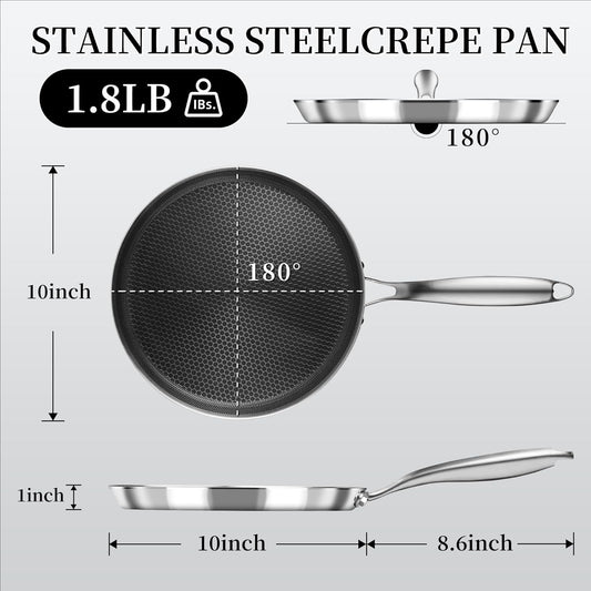 Nonstick Crepe Pan 10 inch Stainless Steel Crepe Pan Honeycomb Coating Flat Skillet Tawa Dosa Tortilla Pan,Omelet Pan with All Stove Tops Available, Induction Compatible