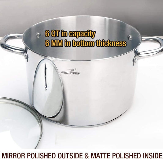 HOMICHEF Stock Pot 6 Quart Nickel Free Stainless Steel - 6 Qt Soup Pot With Lid and Handle - Small Cooking Pot 6 Quart - Ideal for Soup, Sauce, and Induction Cooking