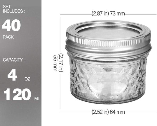 VERONES Mason Jars 4 OZ, Canning Jars With Regular Lids, Ideal for Jam, Honey, Wedding Favors, Shower Favors, DIY Spice Jars, 40 PACK