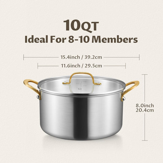 10 Quart Pot with Lid, BEZIA Tri-Ply Stainless Steel Stock Pots, Large Cooking Pots with Silicone Handle, Soup Pot for Induction Cooktop, Compatible with All Cooktops, Dishwasher Safe