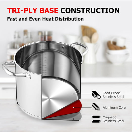 Stock Pot 20 Quart - Stainless Steel Stock Pot with Lid – Heavy-Duty Cooking Pot for Soup, Stew, Pasta – Commercial & Home Use, Induction Compatible - 5 Gallon