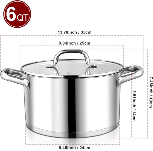 LIANYU 6 QT Stainless Steel Stock Pot, Kitchen Tri-ply Base Cooking Soup Pot with Glass Lid, Heavy Duty Non-toxic Cookware for Meal, Compatible with Induction Cooktop Electric Stove, Dishwasher Safe