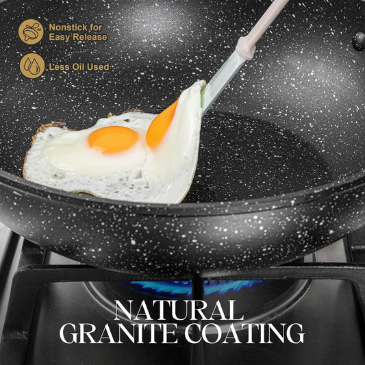 MICHELANGELO 12 Inch Wok Set - Woks & Stir-Fry Pans Nonstick Wok Pan with Lid, Induction Wok with Ergonomic Handle, Stainless Steel Steamer, Fryer Basket, Black