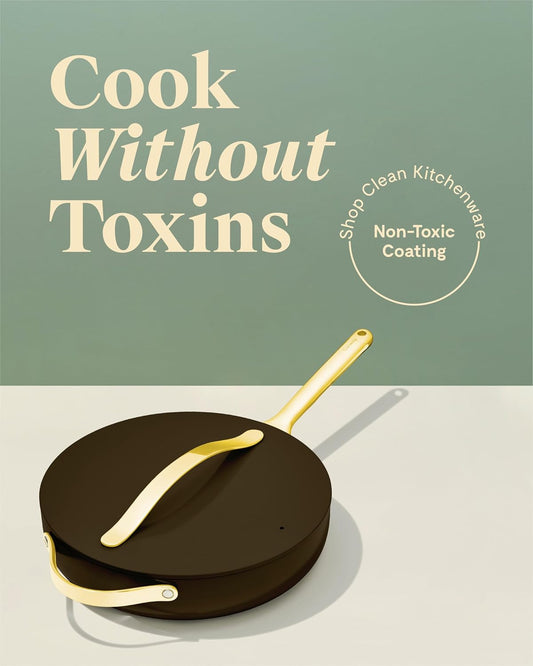 Caraway Nonstick Ceramic Sauté Pan with Lid (4.5 qt, 11.8") - Non Toxic, PTFE & PFOA Free - Oven Safe & Compatible with All Stovetops (Gas, Electric & Induction) - Perracotta