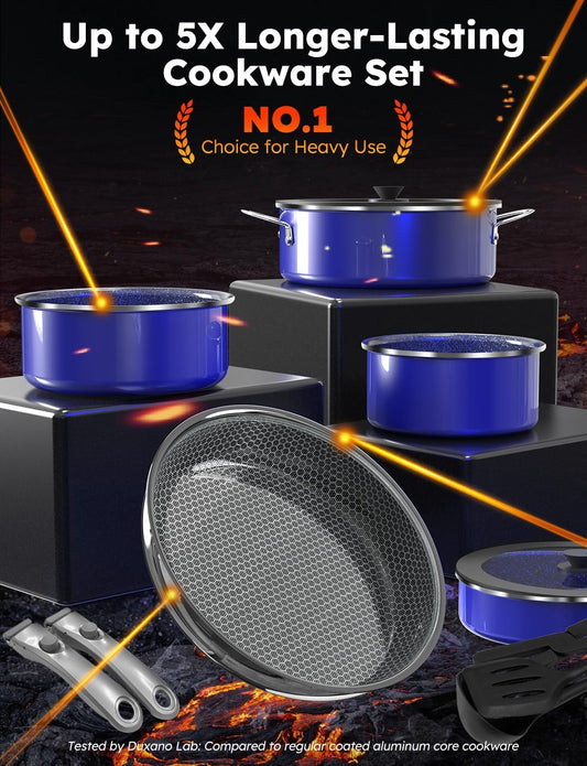 Pro DUXANO 12PC Hybrid 3-Ply Stainless Steel Skillet&Nonstick Pots and Pans Set, High Heat Sear&Fry, 2-Layer Ceramic Induction Cookware, 9H Scratch-Resistant&Anti-Warp,PFAS Free,All Cooktop/Dishwasher