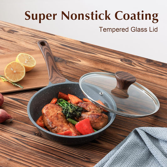 SENSARTE Nonstick Frying Pan Skillet with Lid, Omelet Pan with Cover, Healthy Egg Pan Chef's Pan, Kitchen Cooking Pan, PFOA Free (8inch + Glass Lid)