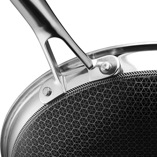 HexClad Hybrid Nonstick 14-Inch Frying Pan with Stainless Steel Lid, Stay-Cool Handles, Dishwasher-Friendly, Oven-Safe Up to 900°F, Induction Ready, Compatible with All Cooktops