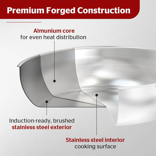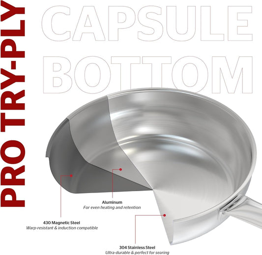 Sunhouse 8 Inch 18/10 Chef Series Stainless Steel Frying Pan, Tri-Ply Stainless Steel Construction, PFOA-FREE, Stay-Cool Handle, Induction Compatible