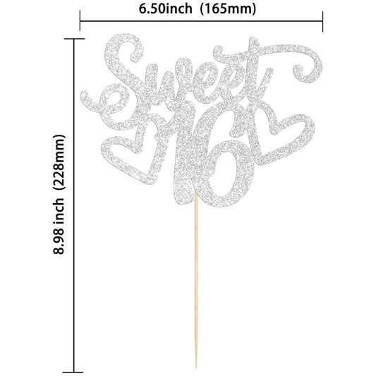 Gyufise 1Pc Sweet Teenager 16 Cake Topper Glitter 16th Birthday Cake Pick for Cheers to 16 Years Old 16th Birthday Party Cake Decorations Supplies Sliver