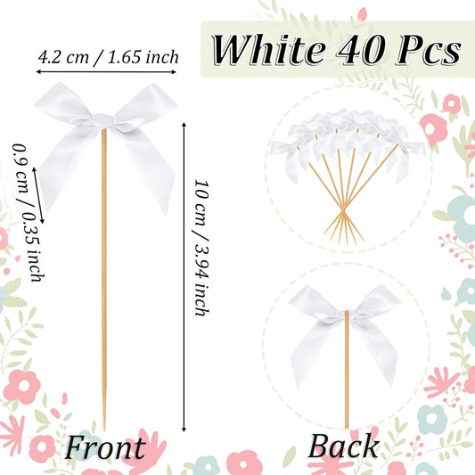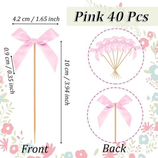 Pink Bow Cupcake Toppers, 40 Pcs Bow Cake Topper Birthday Decorations Bowknot Cupcake Picks for Coquette Theme Party Decoration Bachelorette Bridal Engagement Wedding Baby Shower Party Decor