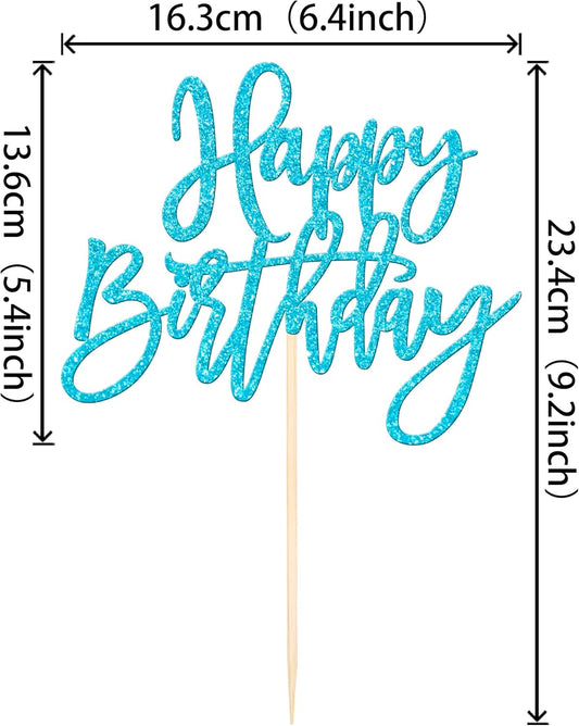 ZHUOWEISM 1 PCS Happy Birthday Cake Topper Glitter Happy Birthday Cake Pick for Celebrating Happy Birthday Anniversary Theme Party Cake Decorations Supplies Light Blue