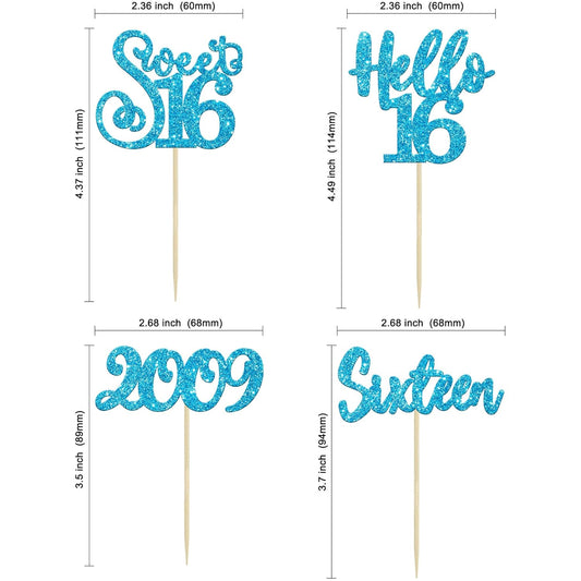 Gyufise 1Pc Sweet Teenager 16 Cake Topper Glitter 16th Birthday Cake Pick for Cheers to 16 Years Old 16th Birthday Party Cake Decorations Supplies Blue