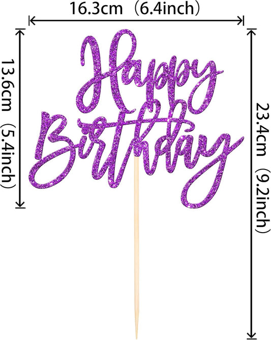 ZHUOWEISM 1 PCS Happy Birthday Cake Topper Glitter Happy Birthday Cake Pick for Celebrating Happy Birthday Anniversary Theme Party Cake Decorations Supplies Purple
