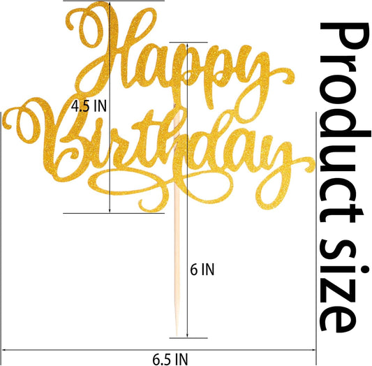 Happy Birthday Cake Toppers 9 Inch Glitter Happy Birthday Cake Pick for Birthday Anniversary Theme Party Cake Decorations Supplies - Gold
