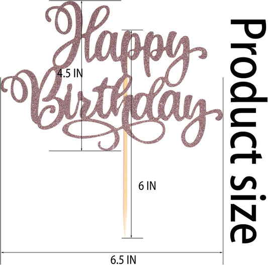 Happy Birthday Cake Toppers 9 Inch Glitter Happy Birthday Cake Pick for Birthday Anniversary Theme Party Cake Decorations Supplies - Rose Gold