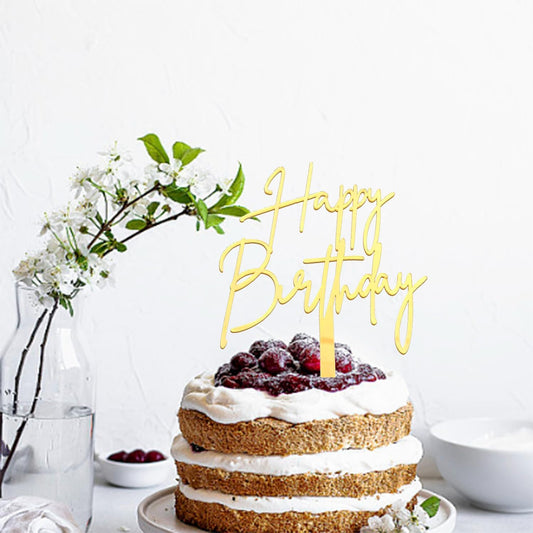 Happy Birthday Cake Topper, Gold Mirror Acrylic Happy Birthday Cake Sign Decorations