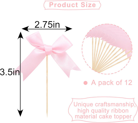20 Pcs Pink Bow Cake Toppers Bowknot Cupcake Topper Bowtie Cake Decoration Ribbon Bows Picks Pink Bow Coquette Birthday Decorations for Girls Princess Bridal Shower Birthday Wedding Party