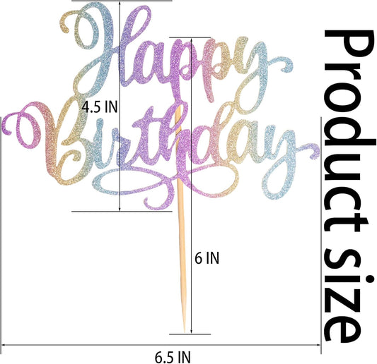Happy Birthday Cake Toppers 9 Inch Glitter Happy Birthday Cake Pick for Birthday Anniversary Theme Party Cake Decorations Supplies - Colorful