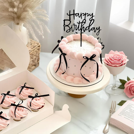 Black Bow Cake Topper Bowknot Ribbons Cupcake Toppers Bow Tie Cake Decorations Black Coquette Bows Cupcake Dessert Picks Happy Birthday Pick for Girl Birthday Princess Wedding Party Supplies 7Pcs