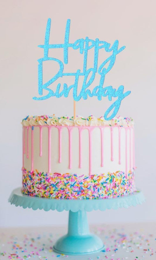 Happy Birthday Cake Topper - Glitter Light Blue Birthday Cake Top Decorations (Light Blue)
