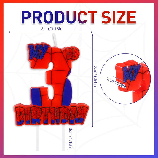 Spider Birthday Party Decorations, Number 3 Red Spider Web Happy Birthday Cake Candle for Boys Girls Spider Web 3rd Birthday Party Supplies (Spider Web 3rd Candle)