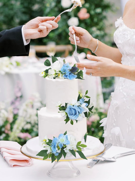 Rinlong 3Pcs Pre-made Flower Cake Topper Cake Decorations Baby Blue Wedding Cake Decorating Flowers Cake Decor Baptism Girl Women Birthday Party Bridal Baby Shower