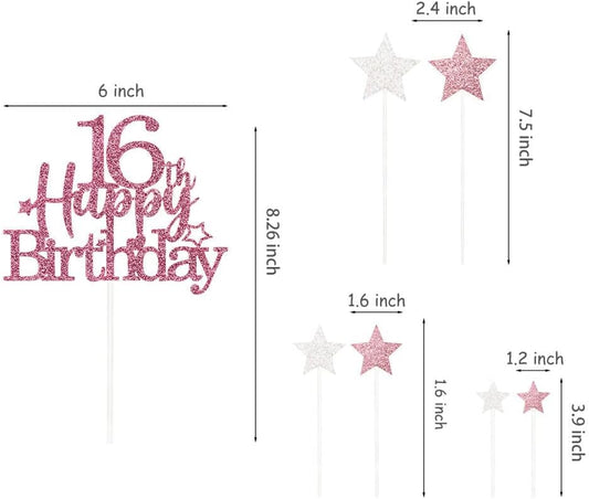 Glittery 16th Happy Birthday Cake Topper with Star,Personalised 16 Birthday Cake Toppers Party Decorations Party Supplies for Boys Girls Rose Gold