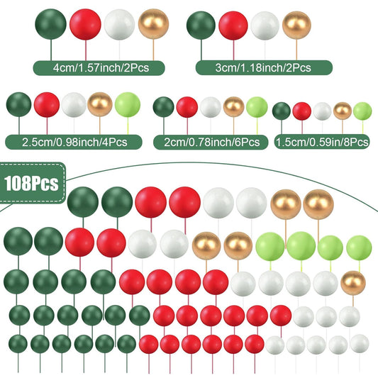 108 Pcs Balls Cake Topper DIY Cupcake Insert Foam Balloons for Cake Baking Wedding Anniversary Birthday Decoration(Various Green, Red, Gold, White,Multi Sizes)