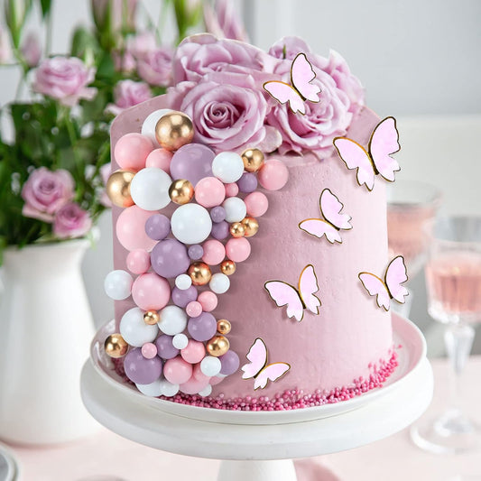 108 Pcs Balls Cake Topper DIY Cupcake Insert Foam Balloons for Cake Baking Wedding Anniversary Birthday Decoration(Pink, Purple, White, Gold,Multi Sizes)