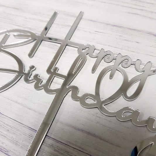 Happy Birthday Cake Topper for Birthday Party Decorations, Mirror Silver Acrylic