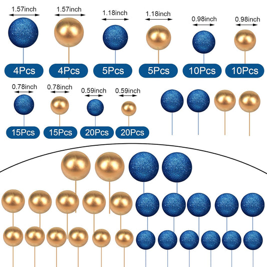 108 Pcs Balls Cake Topper DIY Cupcake Insert Foam Balloons for Cake Baking Wedding Anniversary Birthday Decoration(Bright Blue, Gold,Multi Sizes)