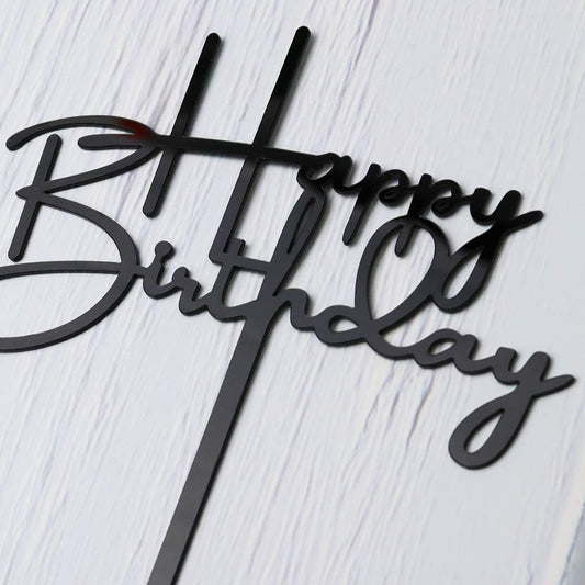 Happy Birthday Cake Topper for Birthday Party Decorations, Black Acrylic