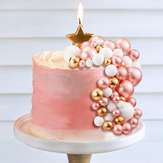 108 Pcs Balls Cake Topper DIY Cupcake Insert Foam Balloons for Cake Baking Wedding Anniversary Birthday Decoration(Rose Gold, White, Gold,Multi Sizes)