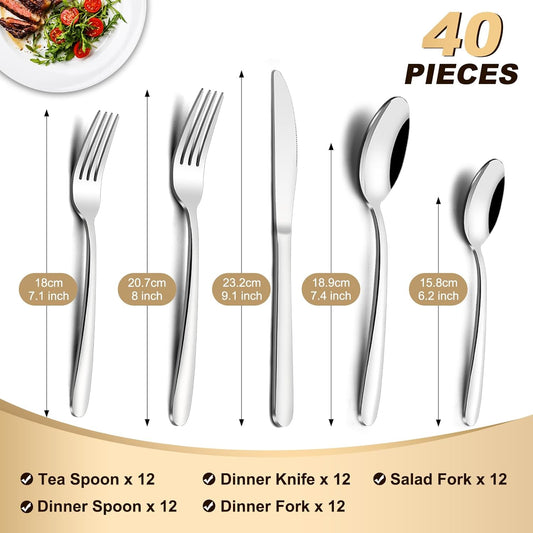 Pleafind 40-Pcs Silverware Set for 8, Premium Stainless Steel Flatware Set, Include Forks Spoons and Knives Set, Mirror Polished Cutlery Utensil Set for Home Restaurant, Dishwasher Safe