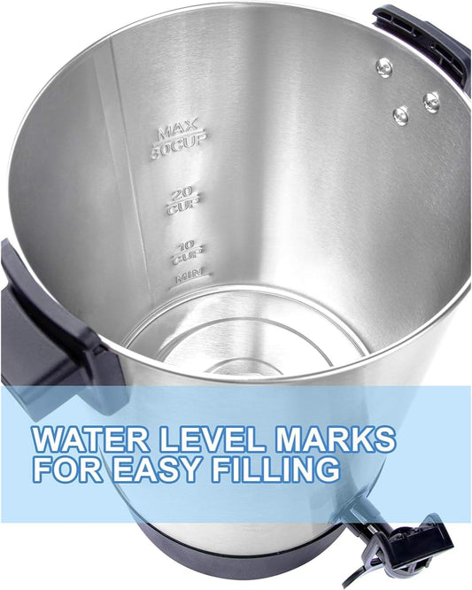 SYBO SR-CP-50B Commercial Grade Stainless Steel Percolate Coffee Maker Hot Water Urn for Catering, 50-Cup 8 L, Metallic