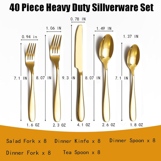 40-Piece Gold Silverware Set Stainless Steel Flatware Set Service for 8 Kitchen Cutlery Utensils Includes Knives Spoons Forks For Home Kitchen Hotel