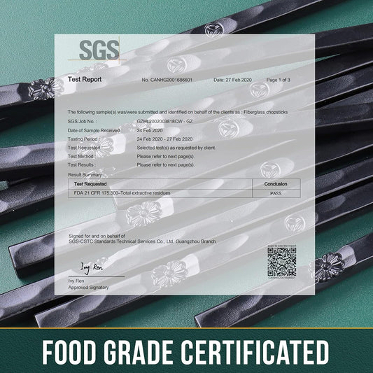 GLAMFIELDS 10 Pairs Fiberglass Chopsticks, Reusable Japanese Chinese Chop Sticks Dishwasher Safe, Non-Slip, 9 1/2 inches