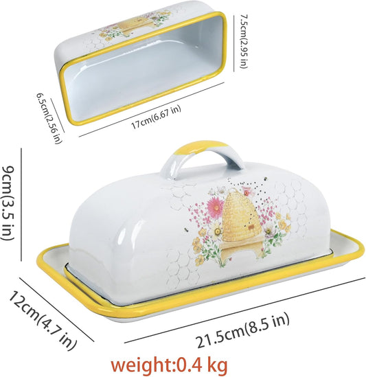 Enamel Butter Dish with Lid Vintage Enamelware Butter Keeper with Flower and Bee Patterns Farmhouse Butter holder Butter container for Kitchen Decor