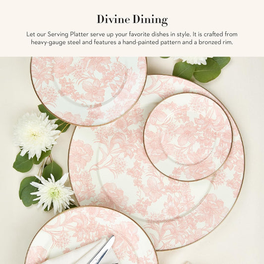 MACKENZIE-CHILDS Enamel Serving Platter, Decorative Serving Platter for Food, 16 Inches, Rosy English Garden