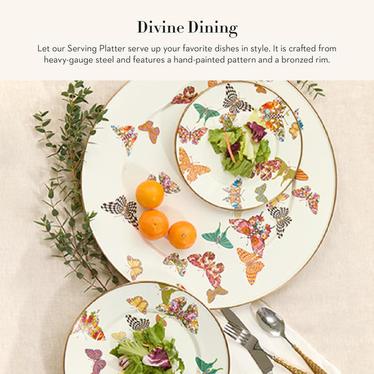 MACKENZIE-CHILDS Enamel Serving Platter, Decorative Serving Platter for Food, 16 Inches, Butterfly Garden