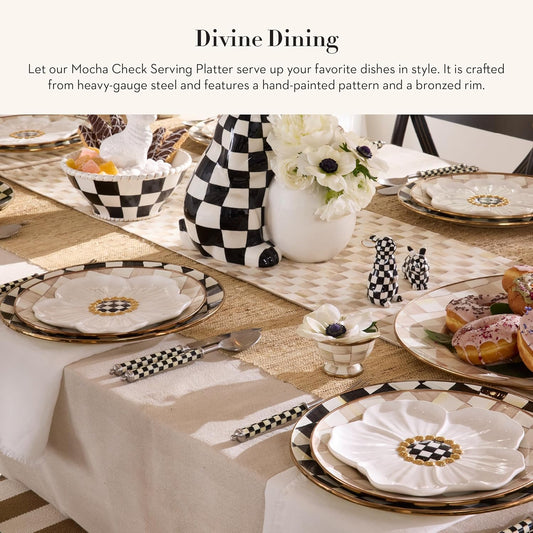 MACKENZIE-CHILDS Enamel Serving Platter, Decorative Serving Platter for Food, 16 Inches, Brown-and-White Mocha Check