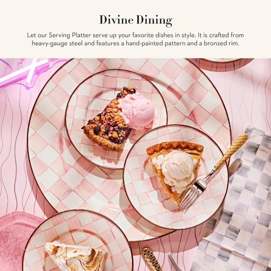 MACKENZIE-CHILDS Enamel Serving Platter, Decorative Serving Platter for Food, 16 Inches, Rosy Check