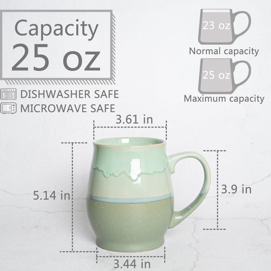 Bosmarlin Extra Large Ceramic Coffee Mug, 25 Oz, Dishwasher and Microwave Safe, Oversized Big Tea Cup for Office and Home, Reactive Glaze (Green)