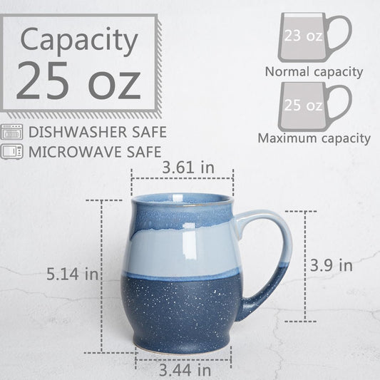 Bosmarlin Extra Large Ceramic Coffee Mug, 25 Oz, Dishwasher and Microwave Safe, Oversized Big Tea Cup for Office and Home, Reactive Glaze (Blue)