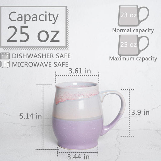Bosmarlin Extra Large Ceramic Coffee Mug, 25 Oz, Dishwasher and Microwave Safe, Oversized Big Tea Cup for Office and Home, Reactive Glaze (Purple)
