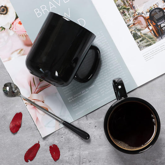 Smilatte 20 OZ Large Coffee Mug, M016 Plain Ceramic Boss Big Tea Cup with Handle for Dad Men, Set of 2, Black