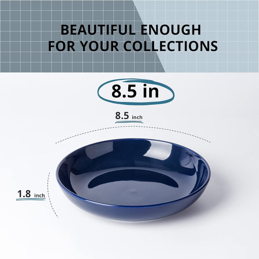 Y YHY 8.5" Vivid Blue Pasta, Salad & Soup Serving Bowls Set of 4, 32oz Large Ceramic, Microwave, Oven & Dishwasher Safe, Sturdy Porcelain Perfect for Daily Dining, Family Gatherings, Parties