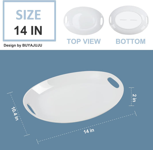 Porcelain Serving Platter with Handles, 14" serving dishes for entertaining, Oval Serving tray for Salad, Stew, Fruits and Pasta, Set of 2, White