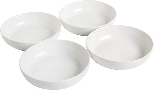 Teocera Pasta Bowls, Large Salad Bowls, Porcelain Bowl Set, Wide and Shallow, Microwave and Dishwasher Safe, 35 Ounce - Set of 4, White
