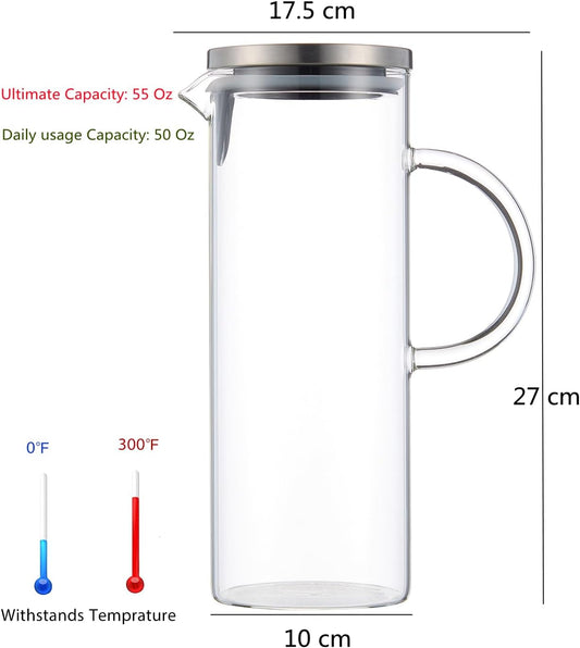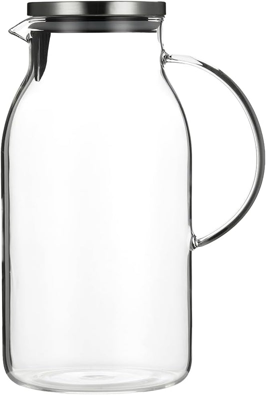 68 Ounces Glass Pitcher with Lid, Hot/Cold Water jug for Coffee, Lemonade, Iced Sun Tea,Beverage, Milk